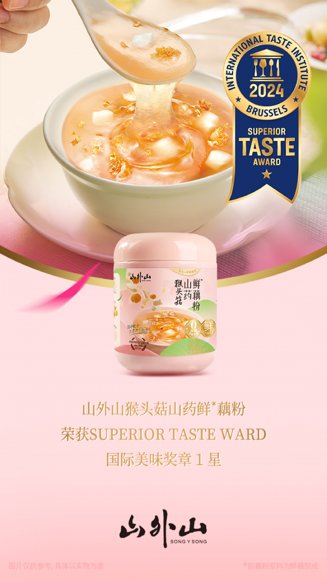 近日,国际风味评鉴所公布了有“美味奥斯卡奖”之称的2024年度国际美味奖章获奖名单。宋韵文化品牌山外山旗下新品猴头菇山药鲜藕粉(“鲜”指的是藕粉原料由鲜藕制成)凭借俱佳的口味与品质,获得国际美味奖1星奖章,也是近四年首个(截止至2024年1月数据)获此殊荣的藕粉产品。