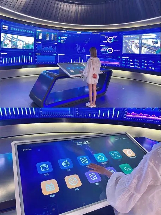 游客走上200米长的参观通道,透过玻璃可以看到螺蛳粉生产的全过程。车间内,自动化、智能化、数据化的机器在有序运作,从预处理车间的产存到熟制车间的深度加工,从酸笋、酸豆角的漂烫冷藏到配料的内包杀菌、外包封箱,让游客感受到企业对于食品安全和品质的坚定承诺。