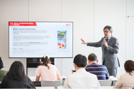 格力高健康创新事业及营销负责人 木村幸生介绍第一代扁桃仁效果产品