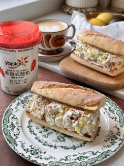 而在更偏料理感的应用中,法国主厨摩根用优诺希腊酸奶设计的鸡肉三明治,通过低温烹饪与酸奶调味,让代餐真正升级为一份具有餐厅质感的食物: