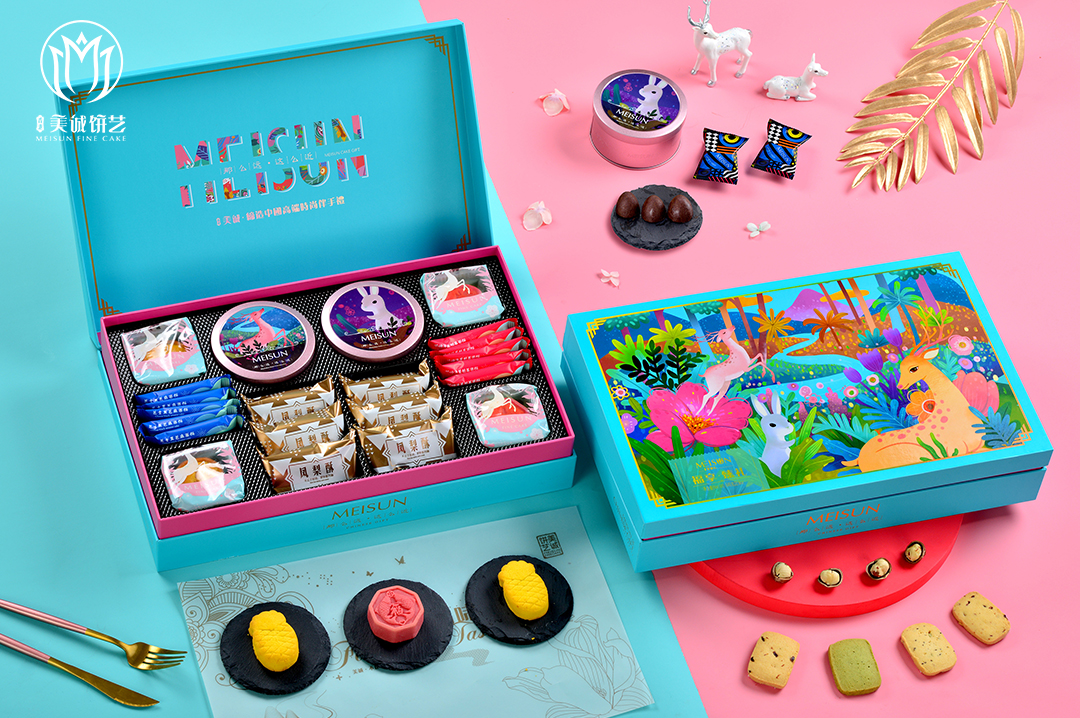 礼盒以对角式的巧妙设计,展现双鱼相望的互动场景,寓意“吉祥如意、年年有余”。亮丽的配色搭配时尚插画,再加上1+1+1三层铁盒包装,融合了东方韵味和时尚创意,甄选之礼,至简不凡;是心意,更是新意;为尊贵的 人,奉上诚挚敬意和祝福。