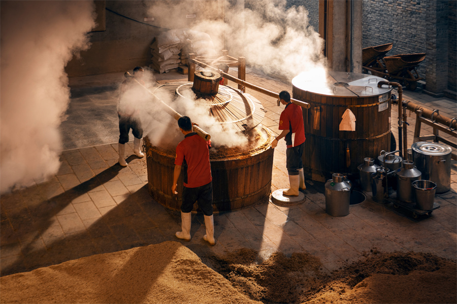 一杯美酒,承载福意。水井坊的酿酒技艺,从宋代名酒“锦江春”一脉相承,三千年古蜀酿酒智慧在此延续。九代酿酒师口传心授、秉持古法,起窖拌料、量质摘酒,步步皆匠心,酿出美酒,化为承载团圆、健康等美好祈愿的文化符号。